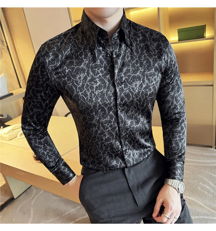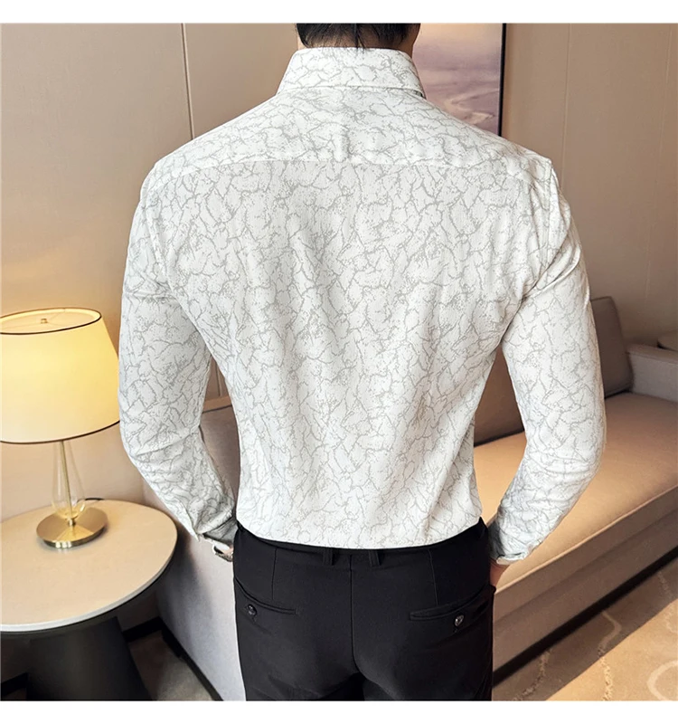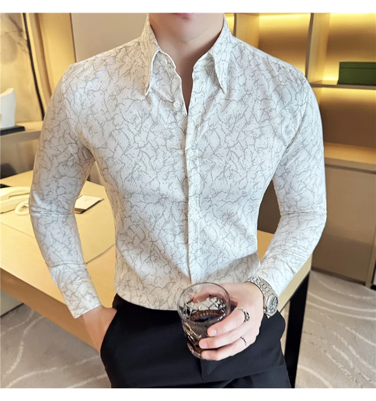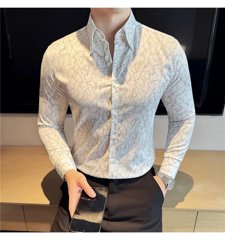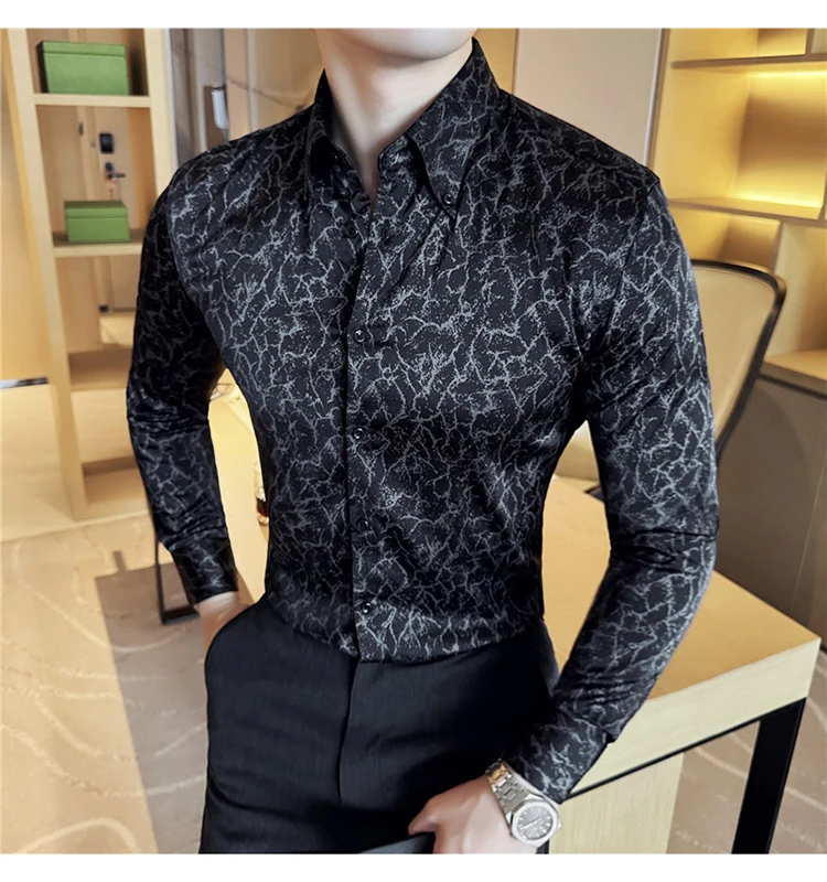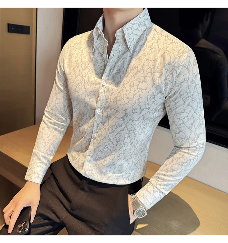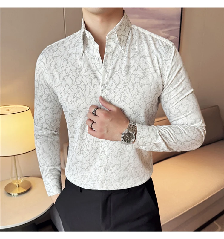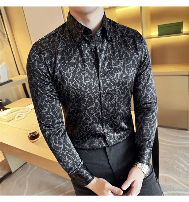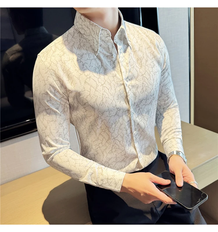 Men Dress Shirt 2024 Solid Casual Long Sleeve Slim Fit Print Shirt Fashion Formal Social Banquet Tuxedo Wedding Men Clothing