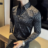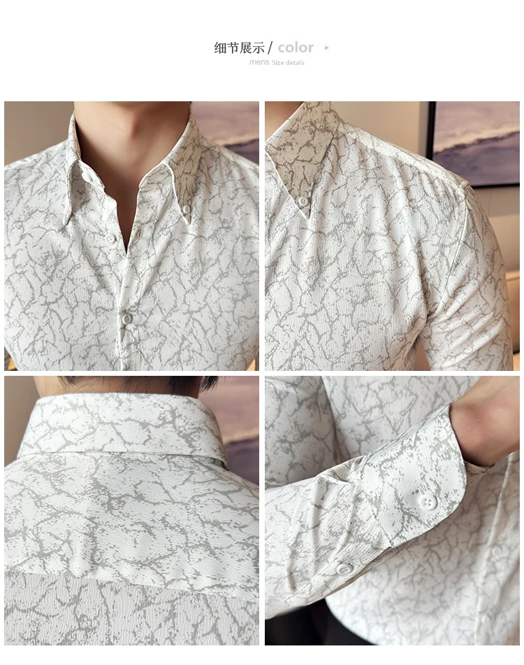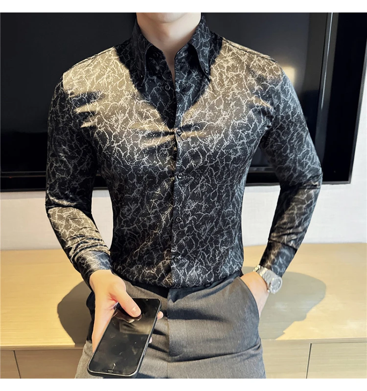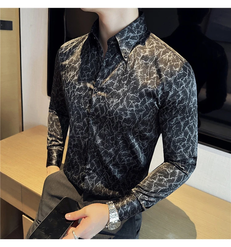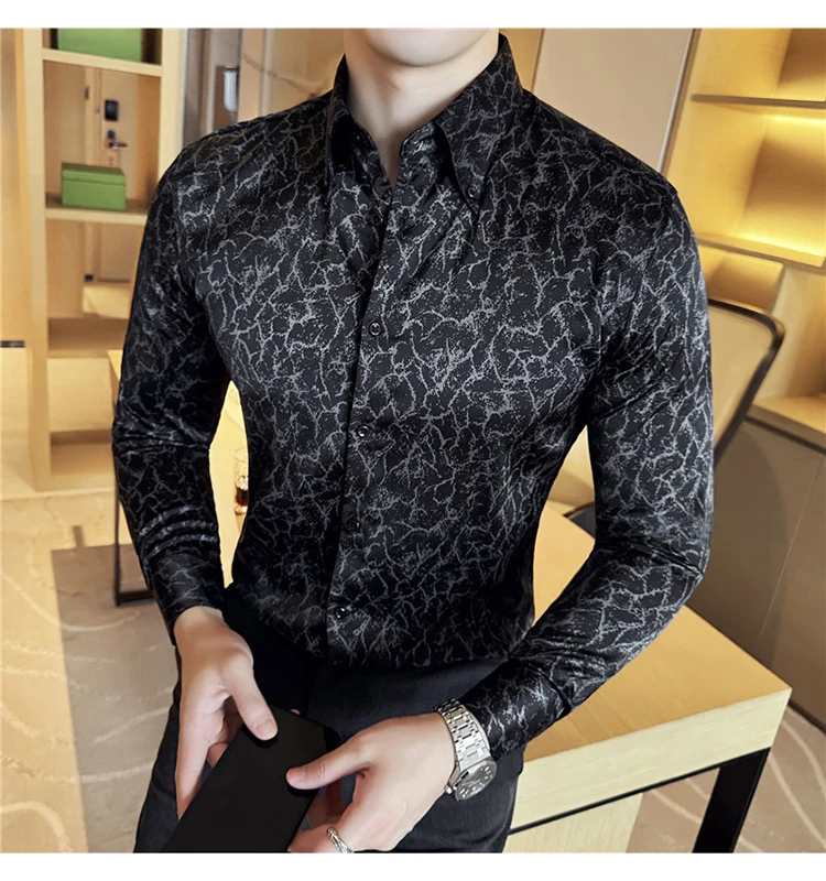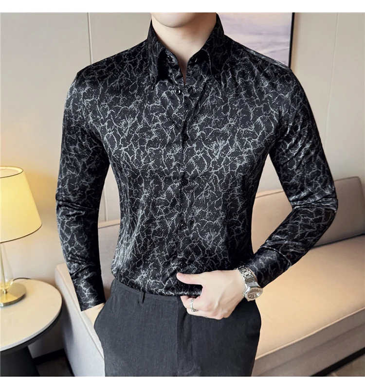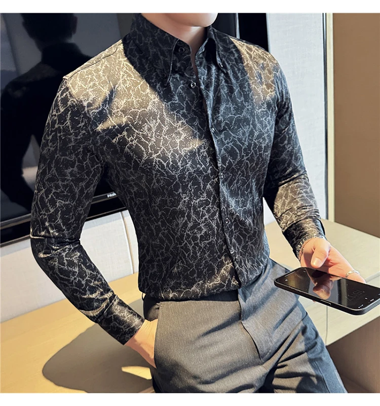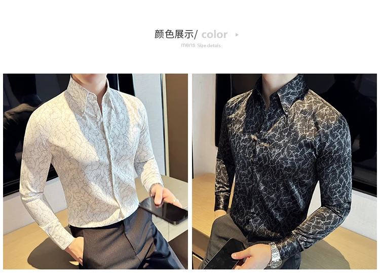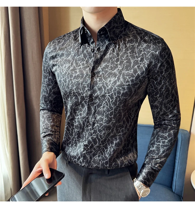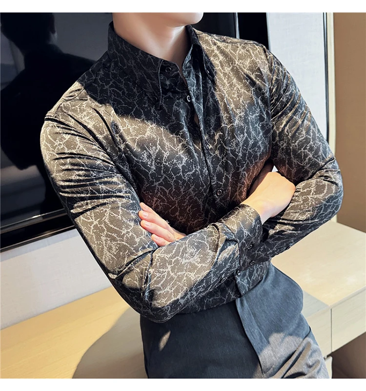 Men Dress Shirt 2024 Solid Casual Long Sleeve Slim Fit Print Shirt Fashion Formal Social Banquet Tuxedo Wedding Men Clothing