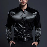 Elegant Satin Silk Men's Dress Shirt Slim Fit Long Sleeve Cocktail Party Luxury Button Down Casual Suit Shirt